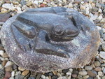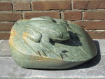 2010Kikker op blad. Gemaakt van india-serpentijn.