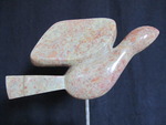 2011Een vogel in Indiaas speksteen. Een donkerpaarse steen met veel witte vlekken.