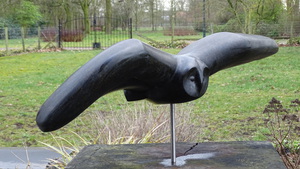 2013Een vliegende vogel in bruin albast. Geschikt voor binnen.