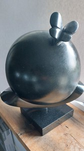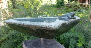 2010Braziliaans speksteen op houten sokkel.